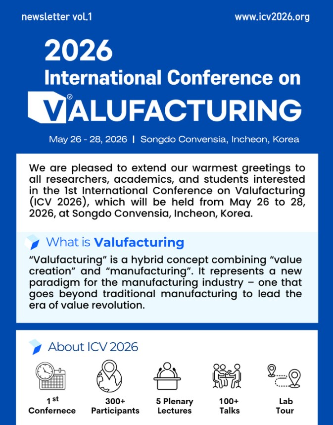 [한국생산기술연구원] 밸류팩처링(Valufacturing) 국제학술대회(ICV 2026) 개최 안내 (5.26(화)~28(목))