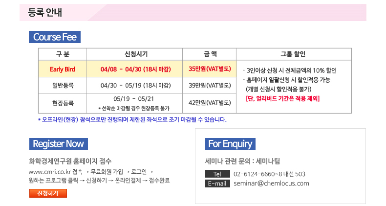 ▷ 신청문의: 세미나팀 ☎ 02-6124-6660~8 내선503 seminar@chemlocus.com