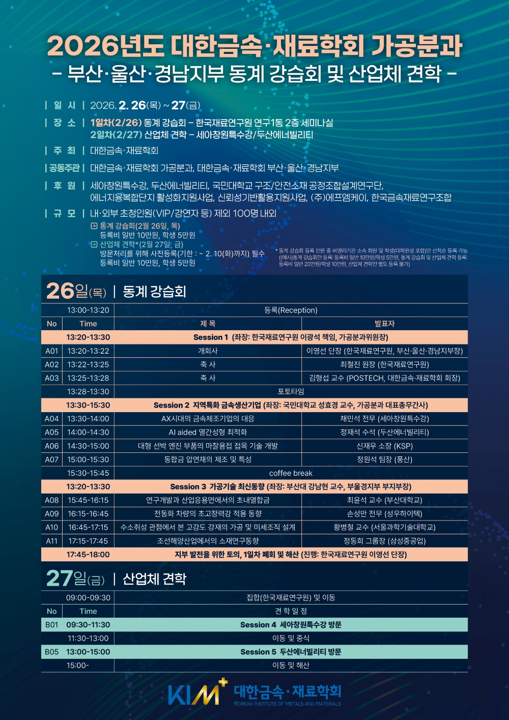 2026년도 대한금속·재료학회 가공분과–부산·울산·경남지부 동계 강습회 및 산업체견학