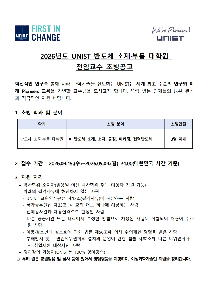 • 공지사항 [포스코청암재단] 제18기 포스코사이언스펠로십 선발 공고 (~5/31) 2026.03.27