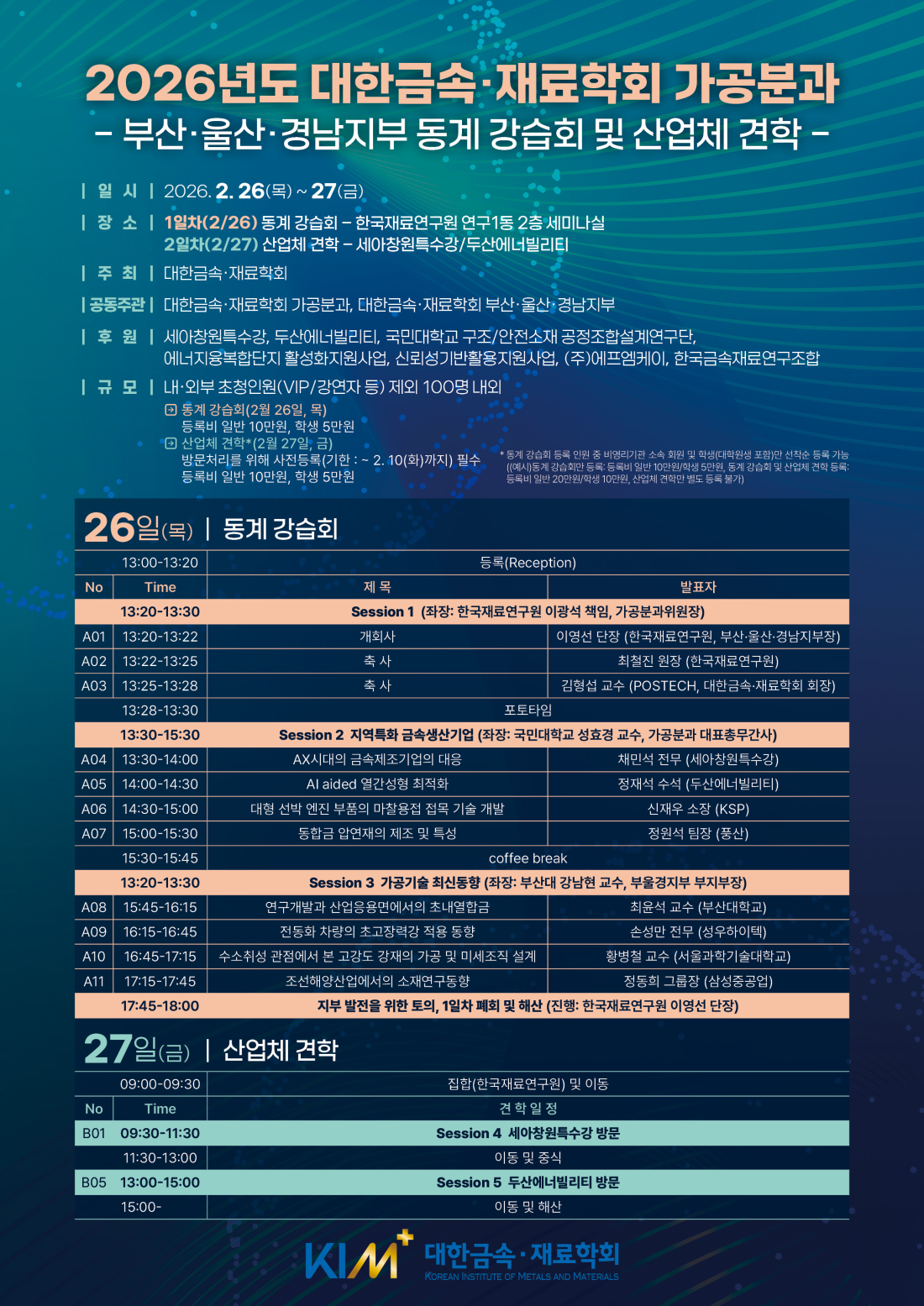 <2026년도 대한금속·재료학회 가공분과–부산·울산·경남지부 동계 강습회 및 산업체 견학>